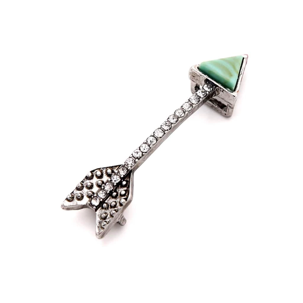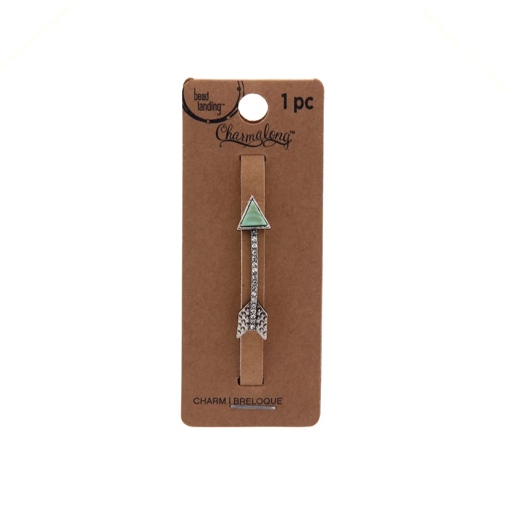 This turquoise rhodium arrow slider charm will be a stunning addition to your jewelry collection. Slide this arrow charm on a Charmalong leather band to create a fun accessory. You can combine with other spacers and charms to make a bold statement piece.