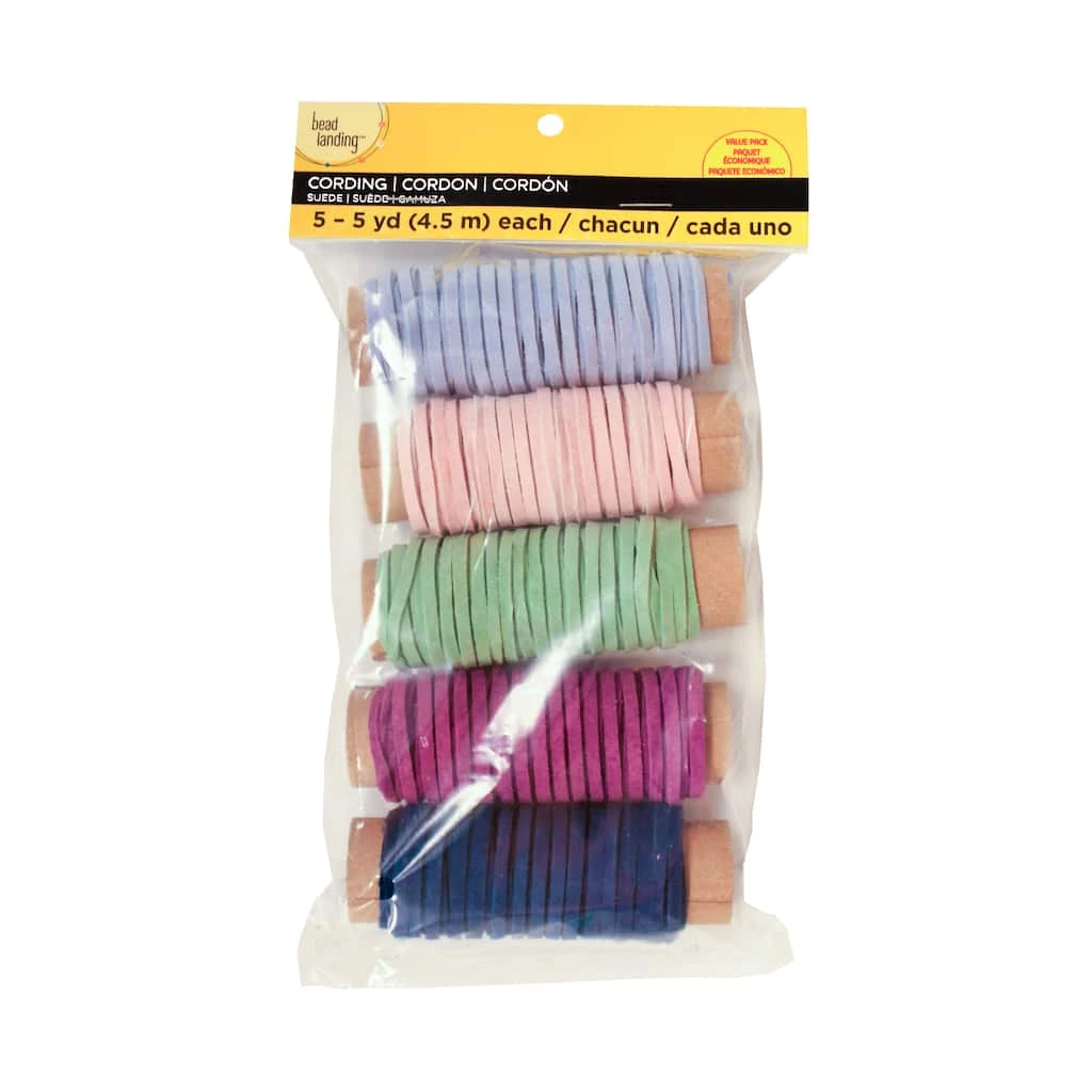Create multicolored string necklaces using the suede lace cording by Bead Landing. You can also combine these cords with charms and beads to make Boho-inspired bracelets.