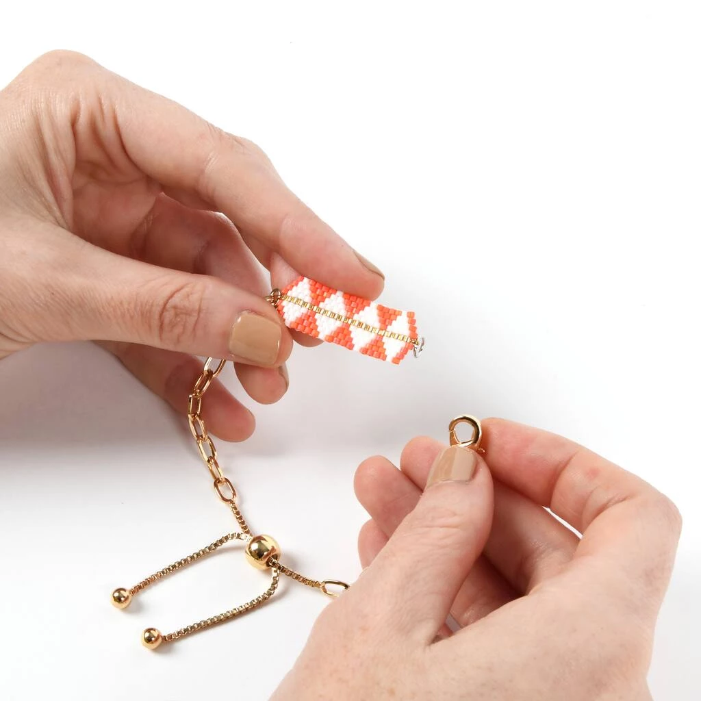 This connector from Bead Landing is a wonderful piece of inspiration for your creativity. Featuring an eye catching triangle design made with glass seed beads, combine this connector with complimentary gemstones, beads, leather cording and more to craft a lovely handmade bracelet or necklace for your collection.