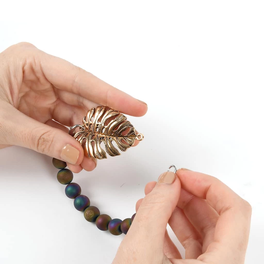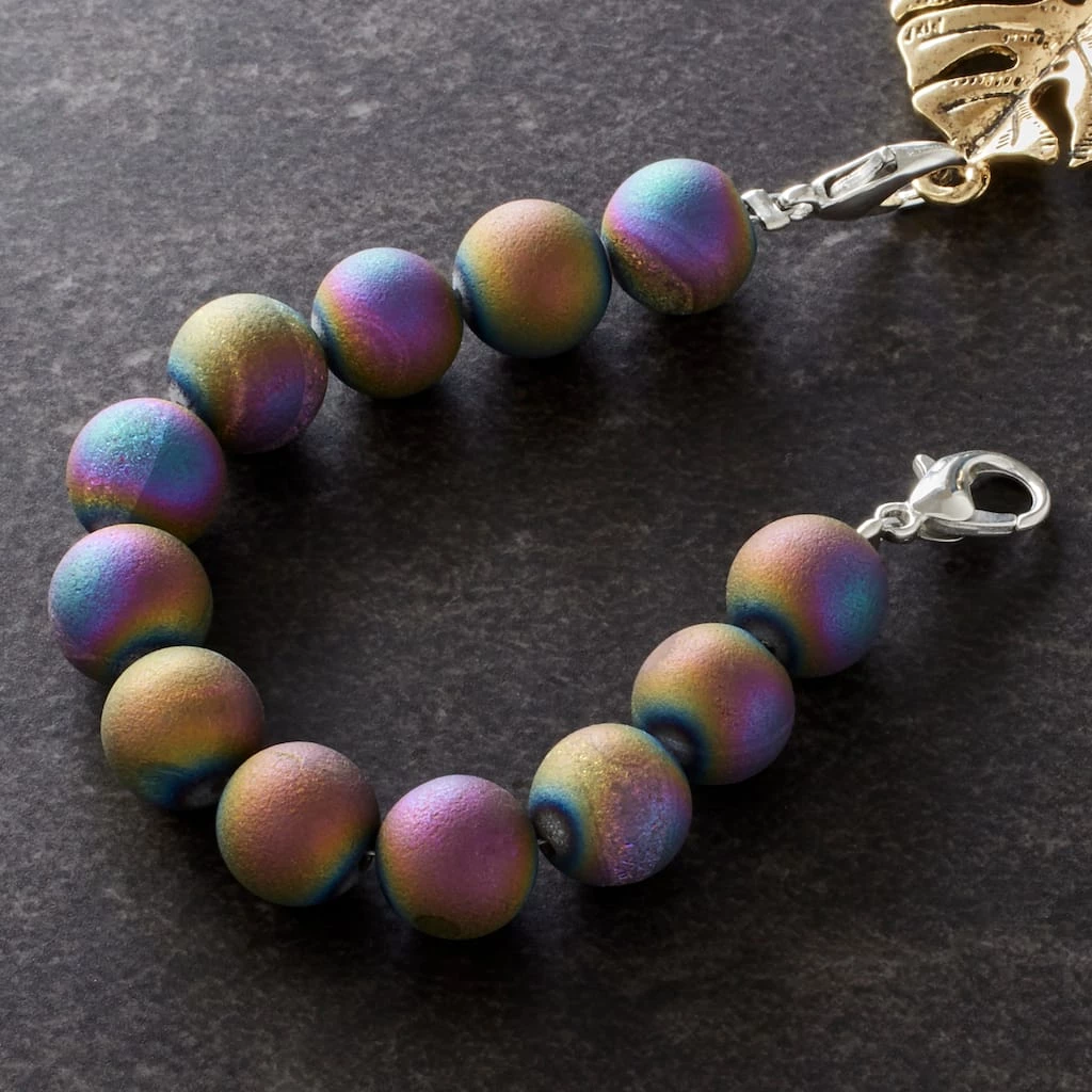 This bracelet connector from Bead Landing is a wonderful piece of inspiration for your creativity. Featuring an eye-catching string of iridescent druzy beads with easy-to-use claw clasps, combine this connector with complimentary die cut metal pieces, beads, charms and more to craft a lovely handmade bracelet for your collection.
