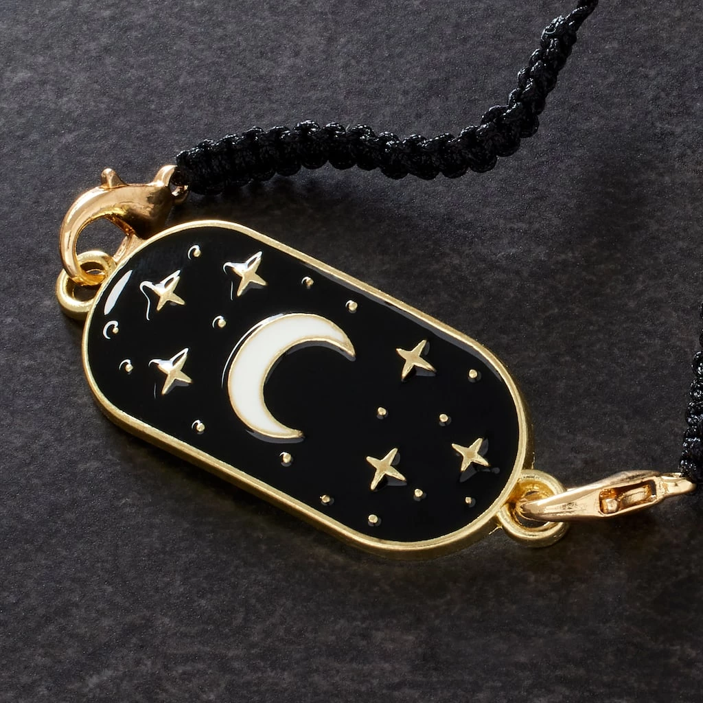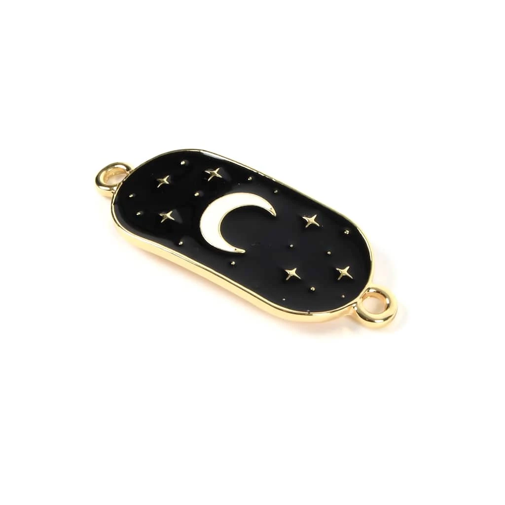 This metal connector from Bead Landing is a wonderful piece of inspiration for your creativity. Featuring an eye catching enamel moon and stars design, combine this connector with complimentary gemstones, beads, leather cording and more to craft a lovely handmade bracelet or necklace for your collection.