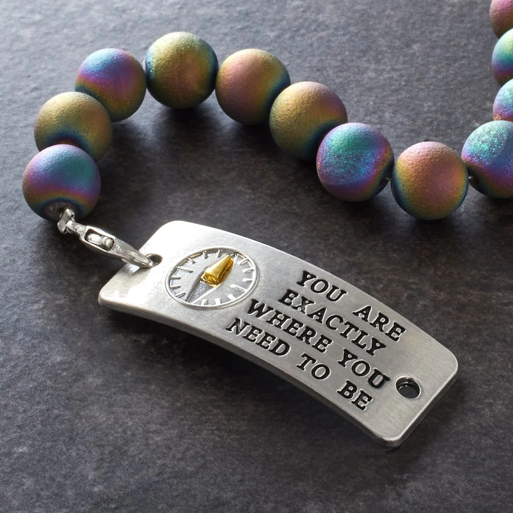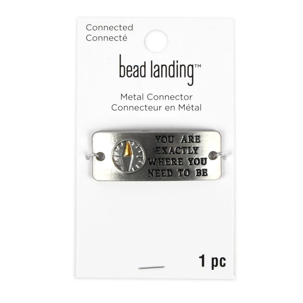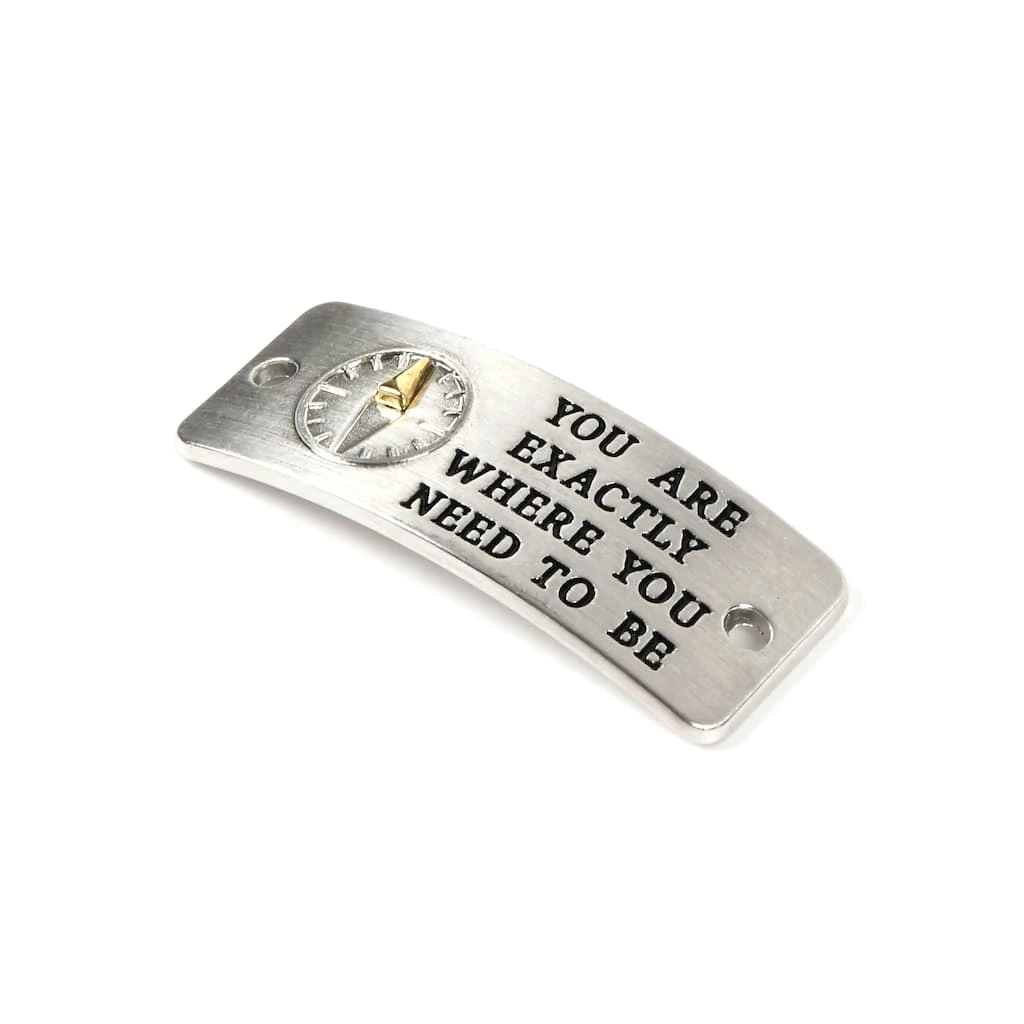 This metal connector from Bead Landing is a wonderful piece of inspiration for your creativity. Featuring an eye catching engraved design with the phrase “You are exactly where your need to be” accented by a compass, combine this connector with complimentary gemstones, beads, leather cording and more to craft a lovely handmade bracelet or necklace for your collection.