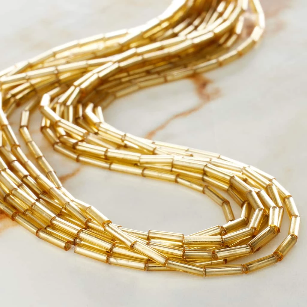 Team these glass bugle seed beads with other beautiful beads to create some fun jewelry. You can also use these shiny beads to embellish embroidery projects, mixed media art, keychains, bag tags and more.