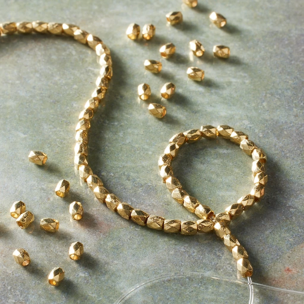 These Hamilton gold faceted beads are perfect for designing bracelets and necklaces. Pair the finished design with a stylish outfit to complete your ensemble.