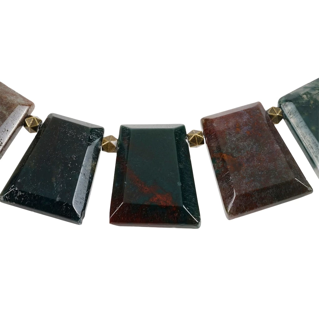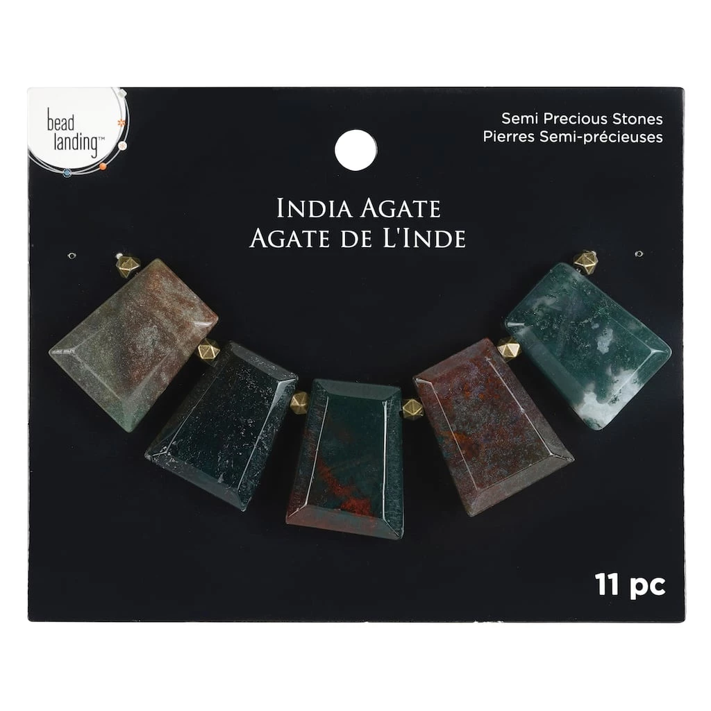 Design a beautiful necklace with these India agate faceted trapezoid beads. These earthy tone beads are paired with a unique spacer beads that will be perfect to use for your DIY jewelry.