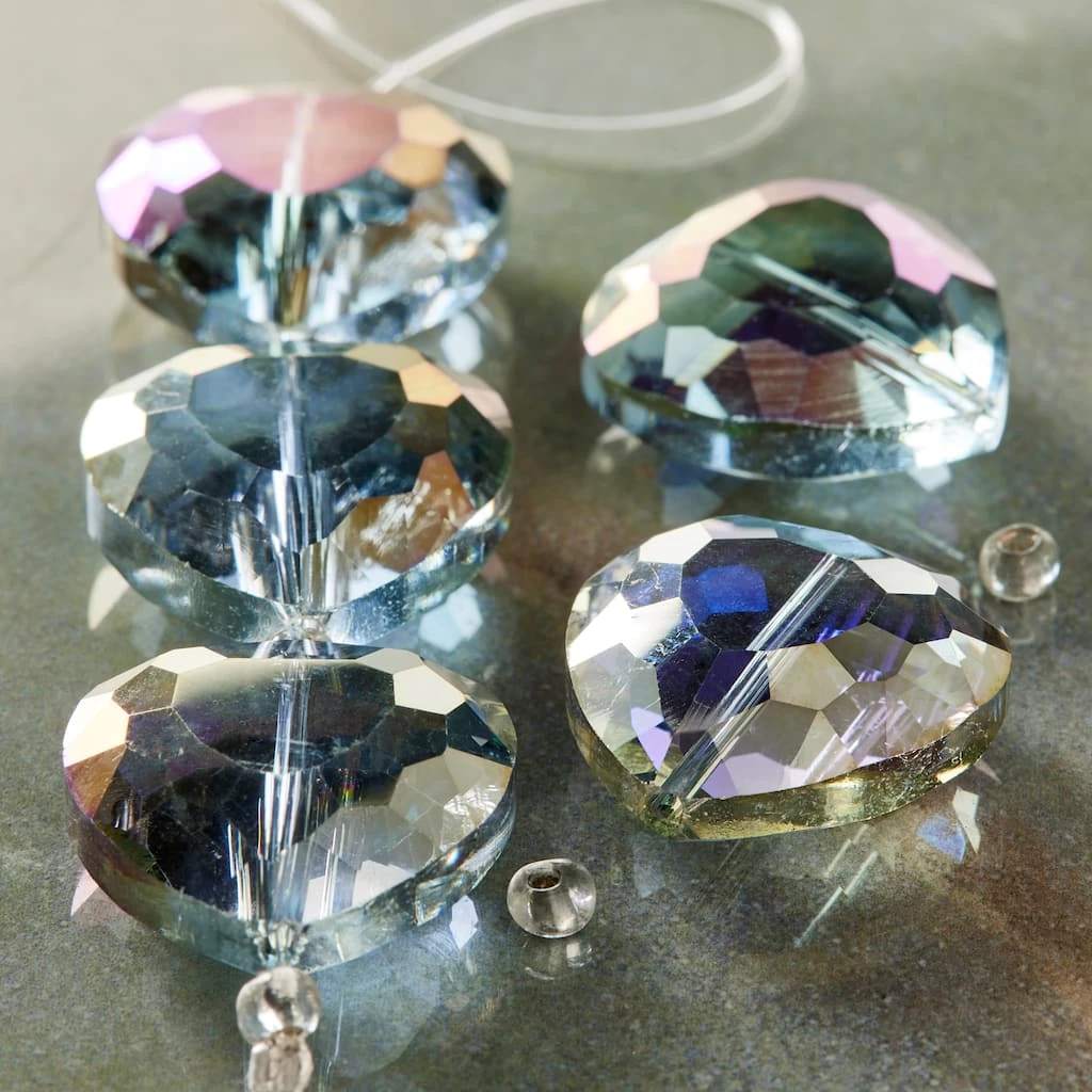 String these light purple silverite novelty heart shaped glass beads by Bead Landing together to make an elaborate layered necklace. You can use these glass beads with matching spacers, chains and pendants to create customized jewelry.