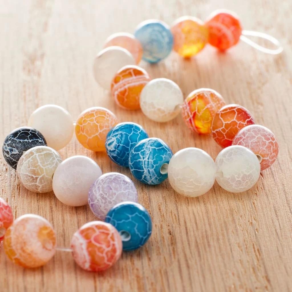 Accessorize your colorful outfit with a bracelet made from these crackled agate beads by Bead Landing. These round multicolor beads are also perfect for creating stunning hoop earrings.