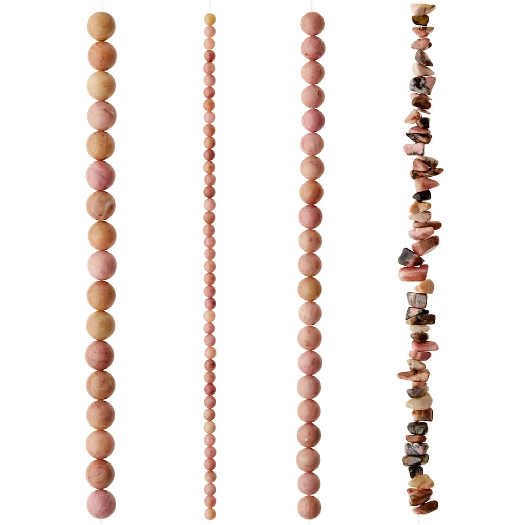These unique round and nugget-shaped rhodonite mauve beads are perfect for crafting bracelets, necklaces, and other cool accessories. Pair the finished project with a stylish outfit to complete the look.