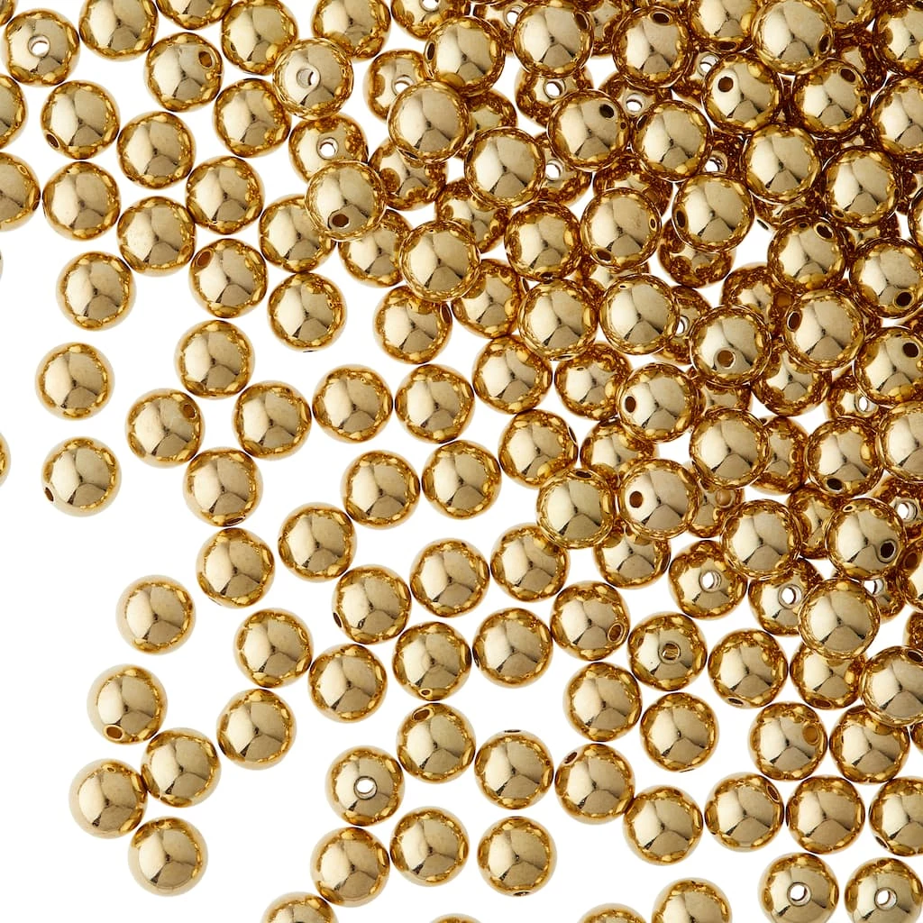 These round beads with a shiny metallic finish will add a nice shimmer to your craft and accessory creations. On their own or mixed with complimentary stones and charms, these beads will make lovely necklaces, bracelets and earrings and are also a great accent for home dรฉcor projects and other crafts.