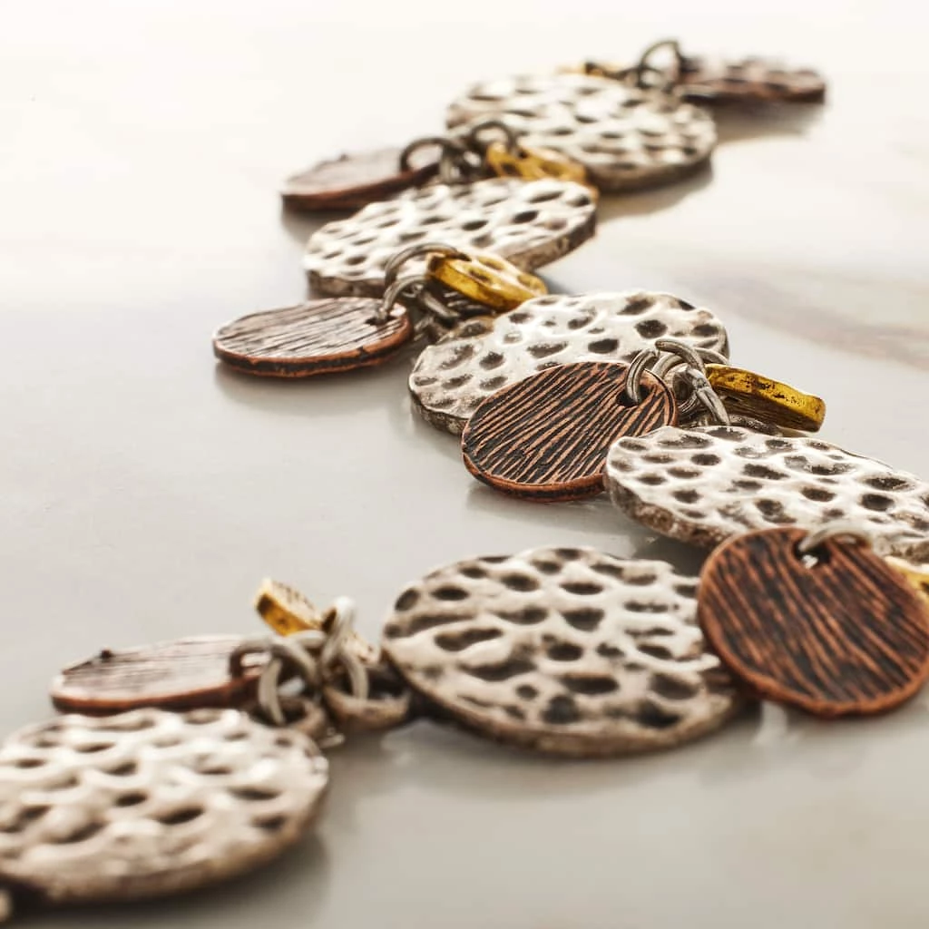 Make elegant bracelets and necklaces with these hammered metal charms by Bead Landingβ’. Use these multicolored charms to create a stunning piece of jewelry.