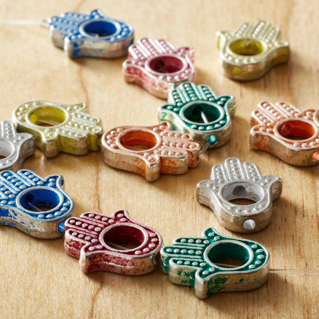 These pretty multicolor Hamsa hand beads by Bead Landing are perfect to make bracelets and earrings. You can also team them with chains, strings and other jewelry supplies to make a little jewelry-making kit for a DIY enthusiast.