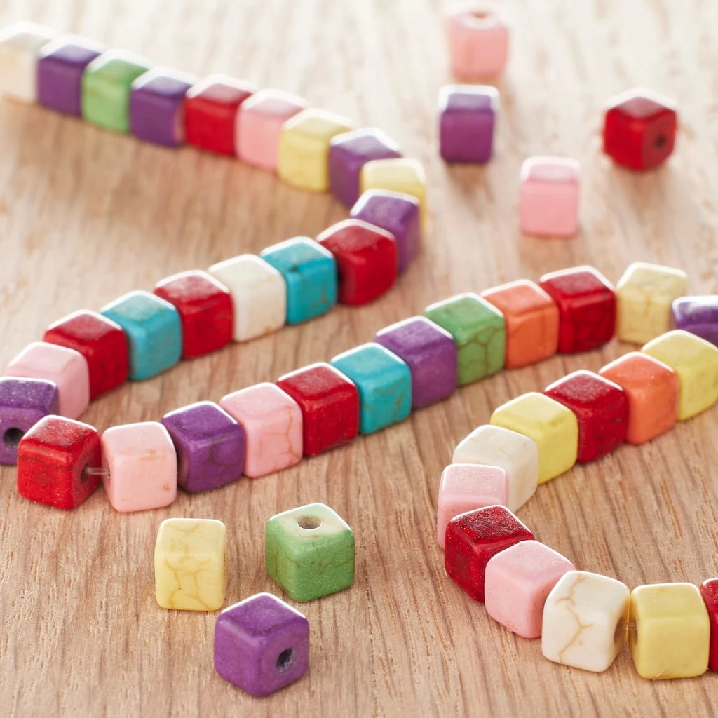 These stylish howlite cube beads will make gorgeous accessories. Simply string them on cords to make customized bracelets, anklets, and necklaces.