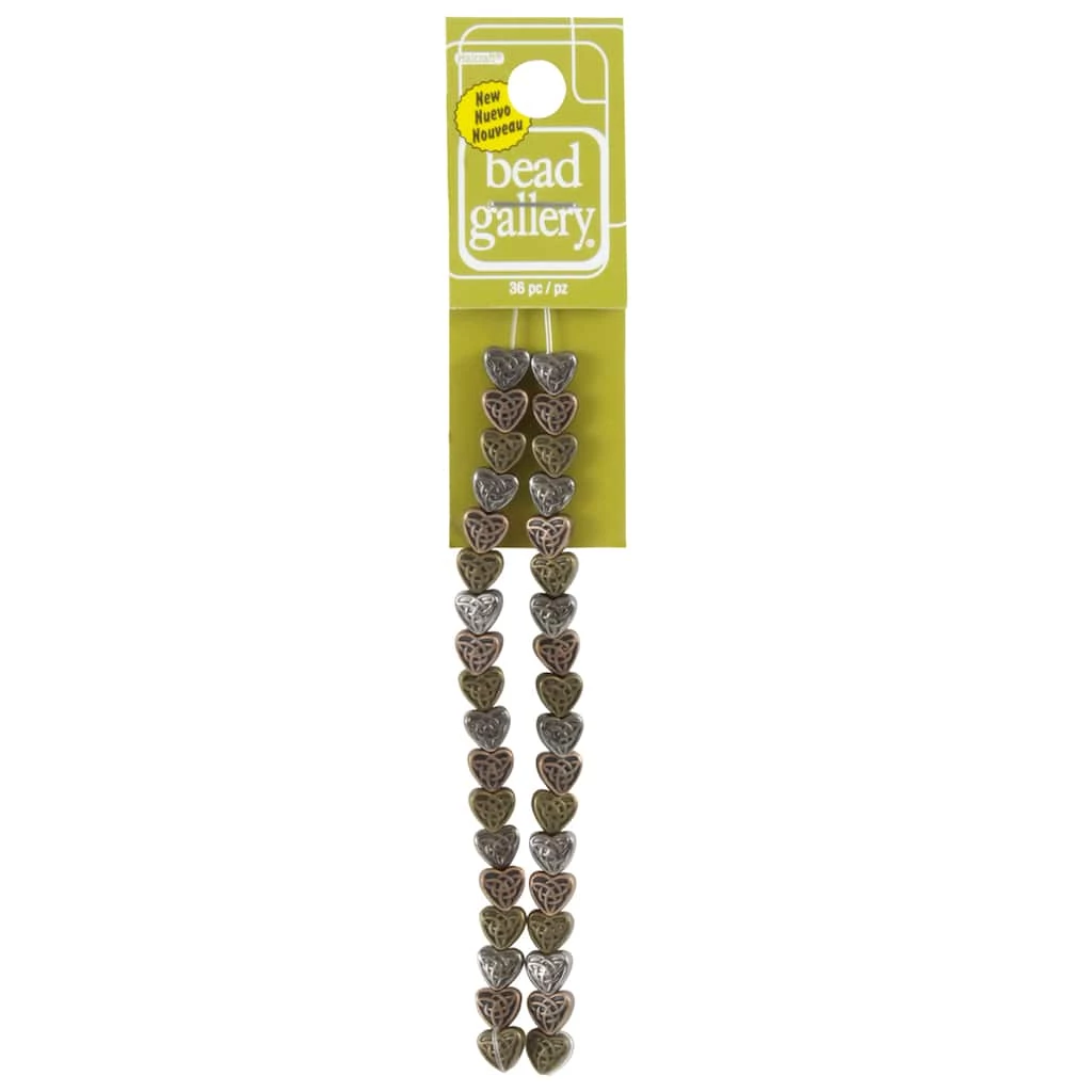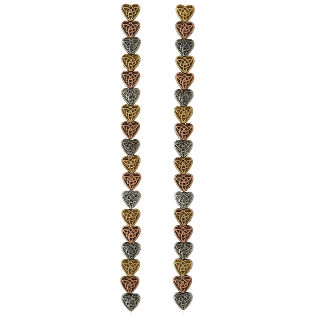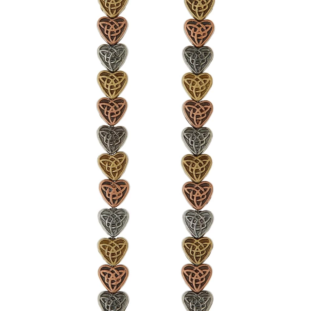 These pretty multi-plated heart beads feature a lovely Celtic pattern. Combine with other beads or a pendant to complete your one-of-a-kind design.