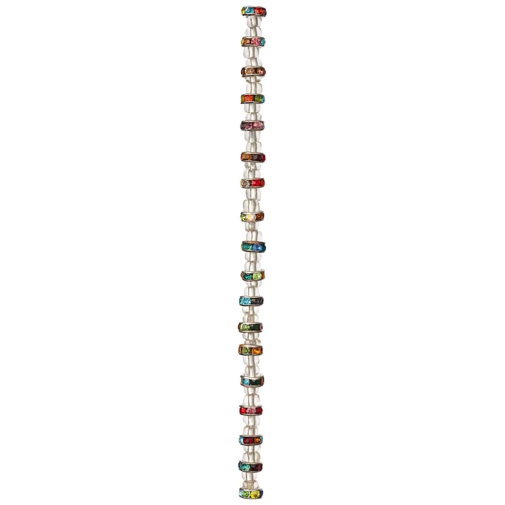 These pretty rondelle beads feature large, multicolored rhinestones around the edge of each bead. Combine with other beads or a pendant to complete your one-of-a-kind design.