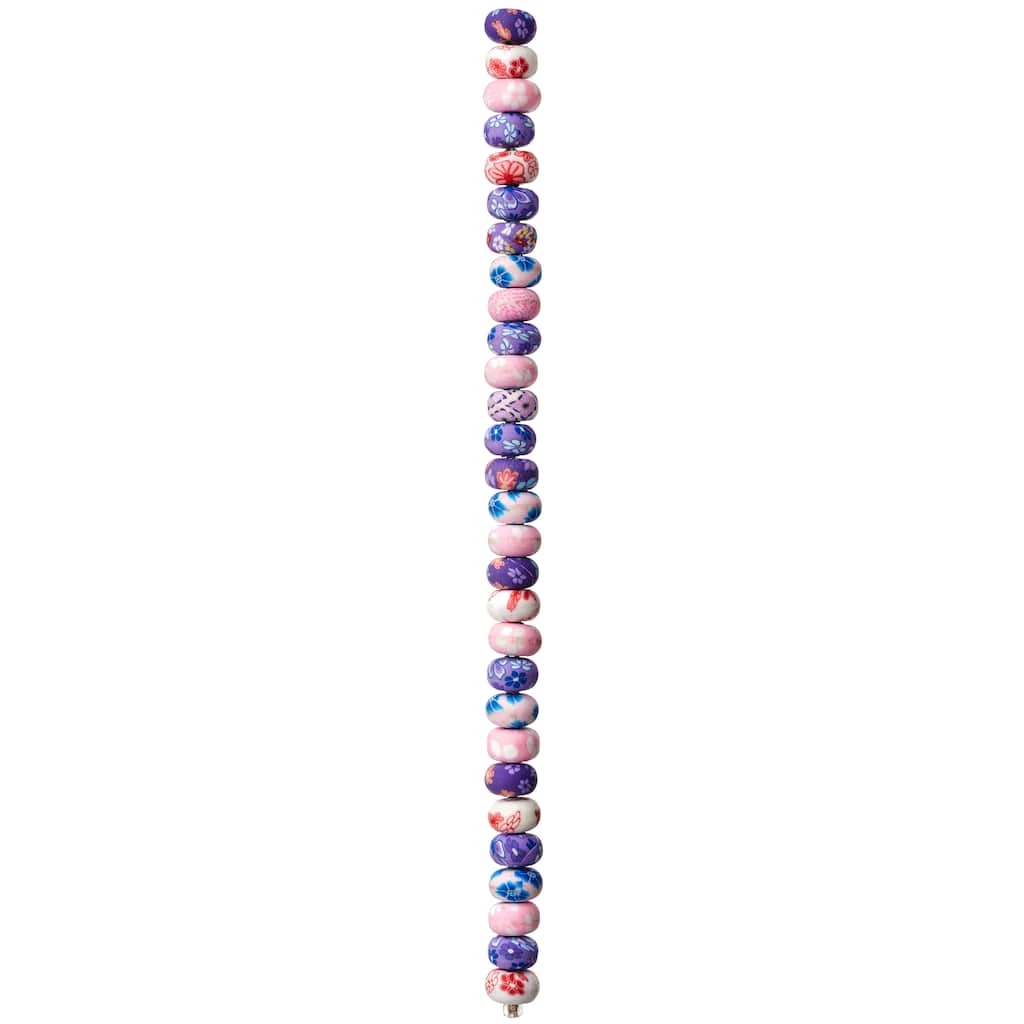 Acrylic beads combine eye-catching beauty with economy and are a lightweight alternative to glass. These pretty rondelle beads resemble clay bead designs.ย Combine these with other beads or a pendant to complete your one-of-a-kind design.