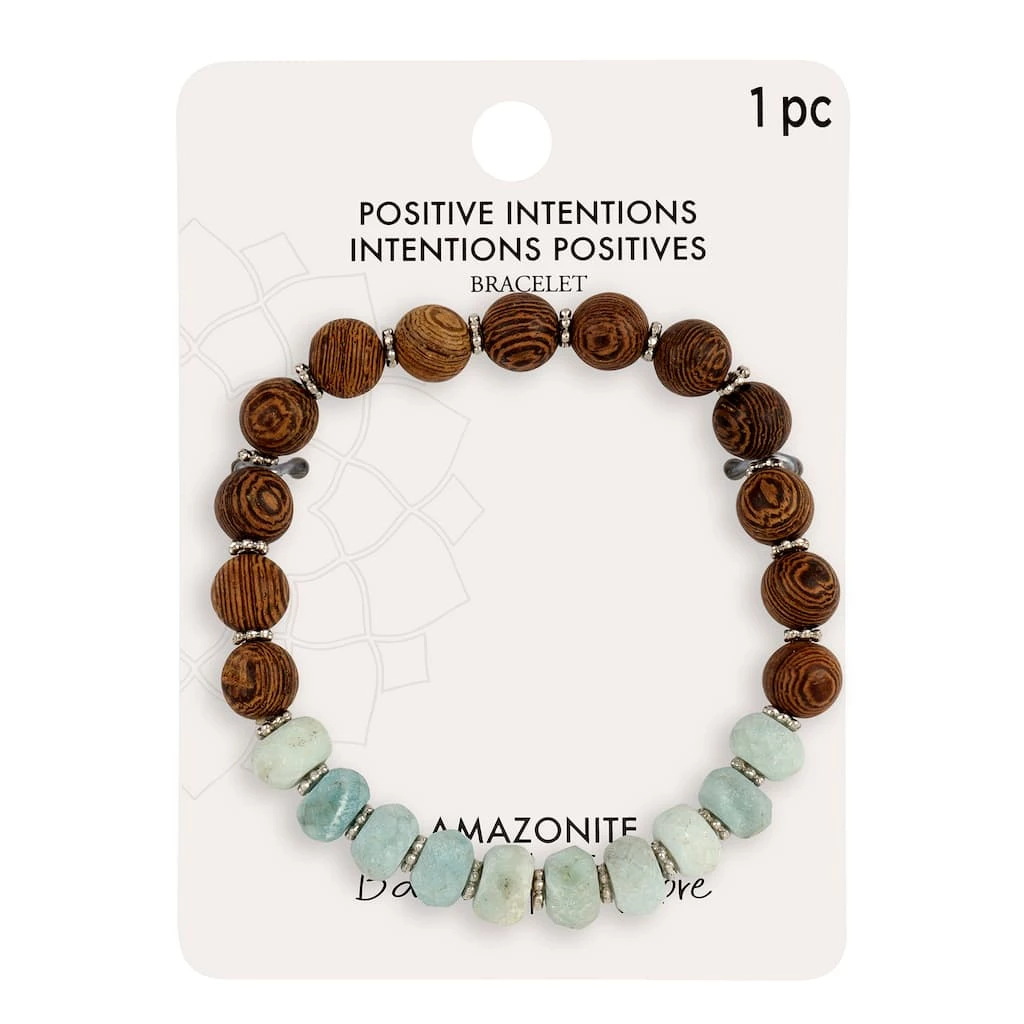 - Cassia Siamca wood, amazonite and zinc alloy