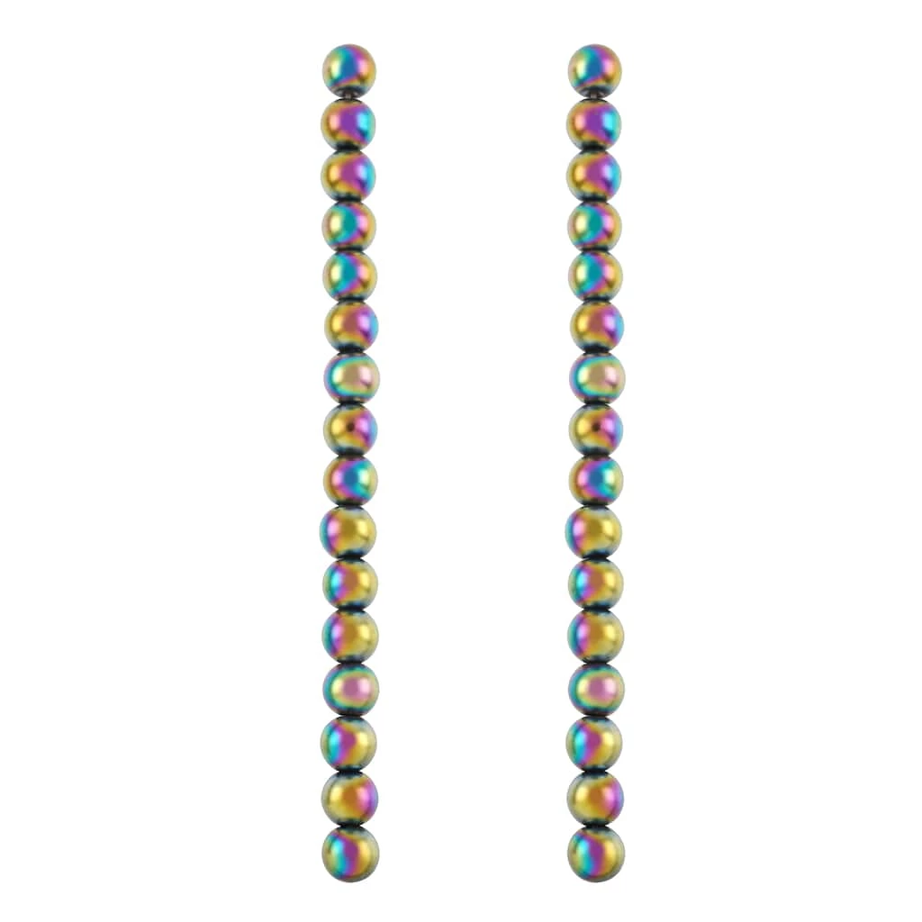 These striking round rainbow hematite beads will add eye-catching appeal to your accessory creations. On their own or mixed with complimentary stones and charms, these beads will make lovely necklaces, bracelets and earrings and are also a wonderful accent for home décor projects and other crafts.