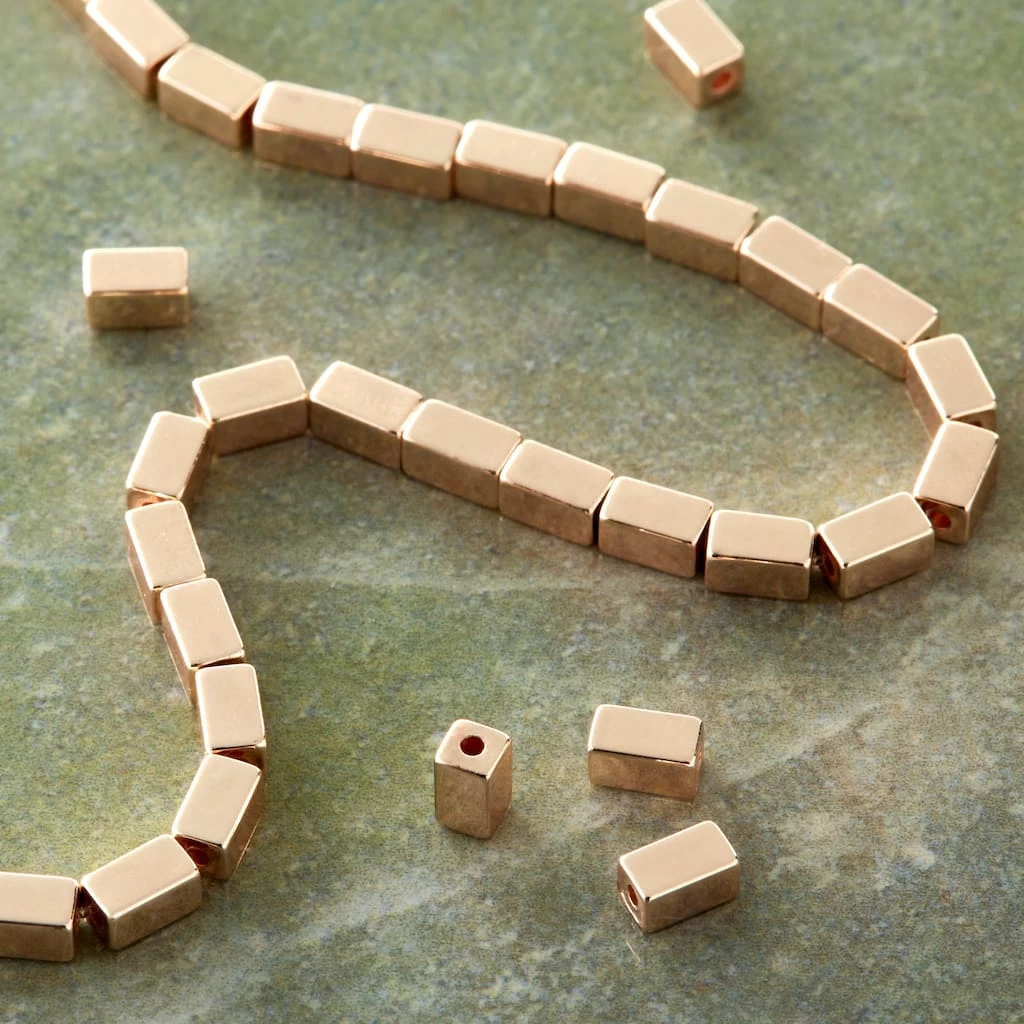 These pretty rose gold rectangle beads by Bead Landing are perfect to make bracelets and earrings. You can also team them with chains, strings and other jewelry supplies to make pretty accessories for a DIY enthusiast.