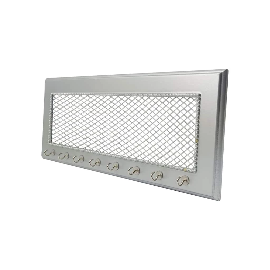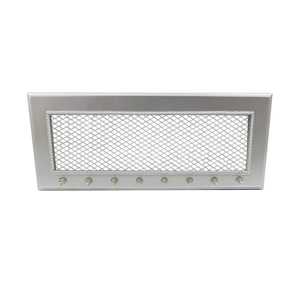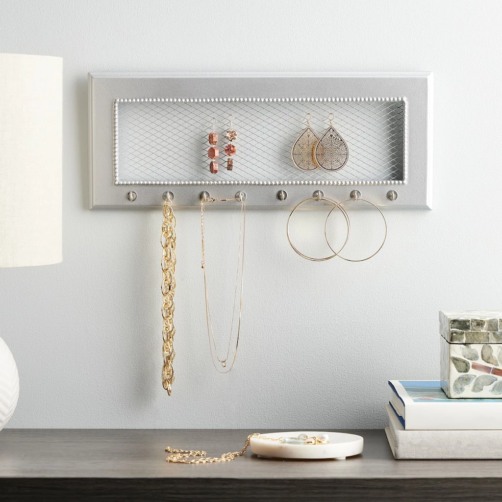 Designed with silver wire mesh and sturdy hooks, this jewelry holder frame is a must-have in your home. You can use this holder frame to neatly arrange your necklaces, bracelets and other accessories.