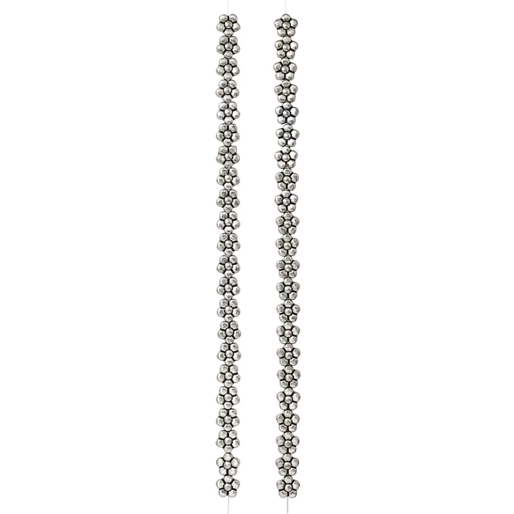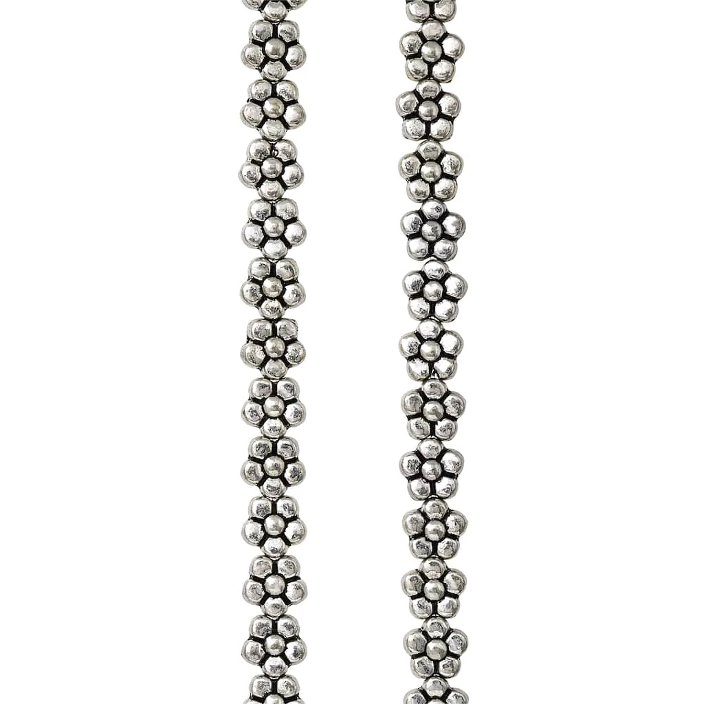 These antique silver-colored beads feature a cute flower pattern with five petals. Combine with other beads or a pendant to complete your one-of-a-kind design.