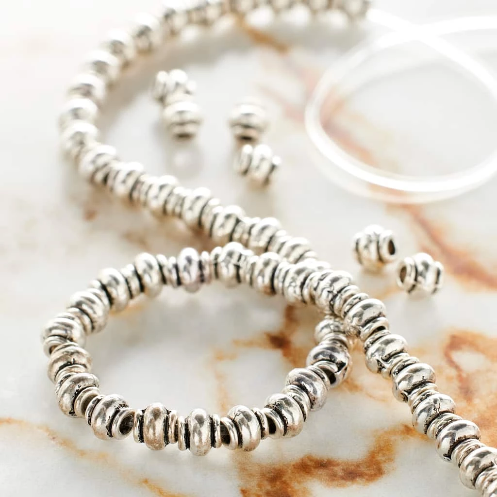 These stylish silver-plated rondelle beads can be used alone or as spacers between other beads in your jewelry piece. Combine these with other beads or a pendant to complete your one-of-a-kind design.