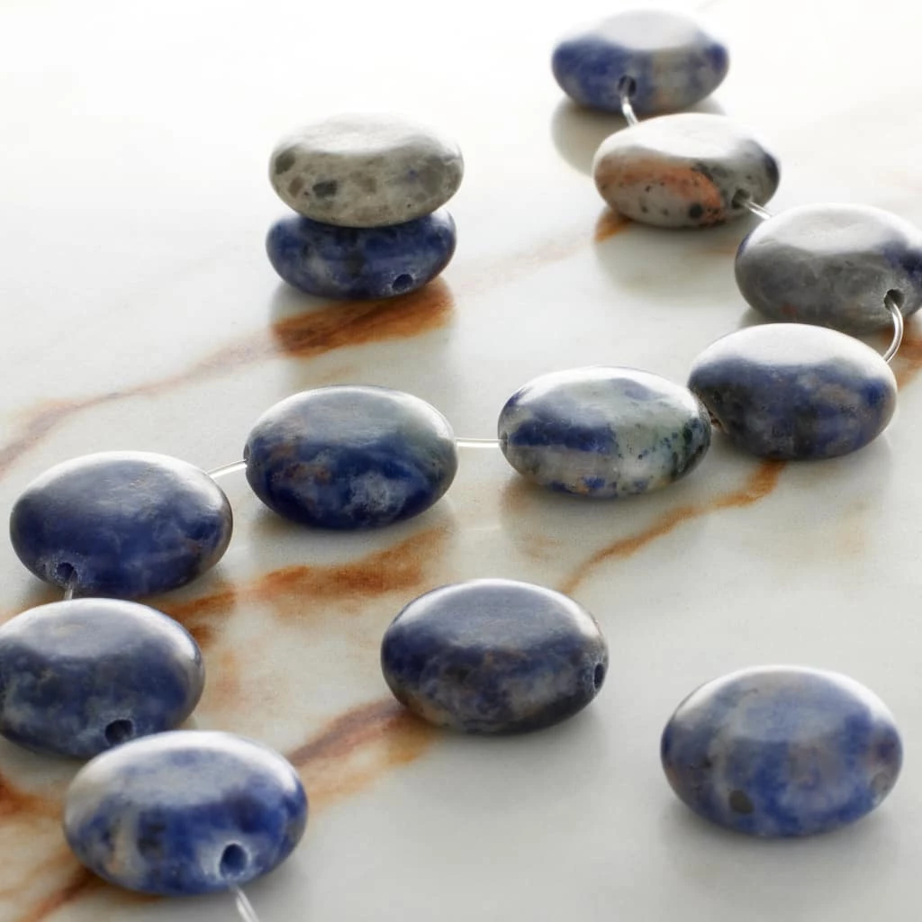 These striking coin-shaped sodalite beads will add eye-catching appeal to your accessory creations. On their own or mixed with complimentary stones and charms, these beads will make lovely necklaces, bracelets and earrings and are also a wonderful accent for home décor projects and other crafts.