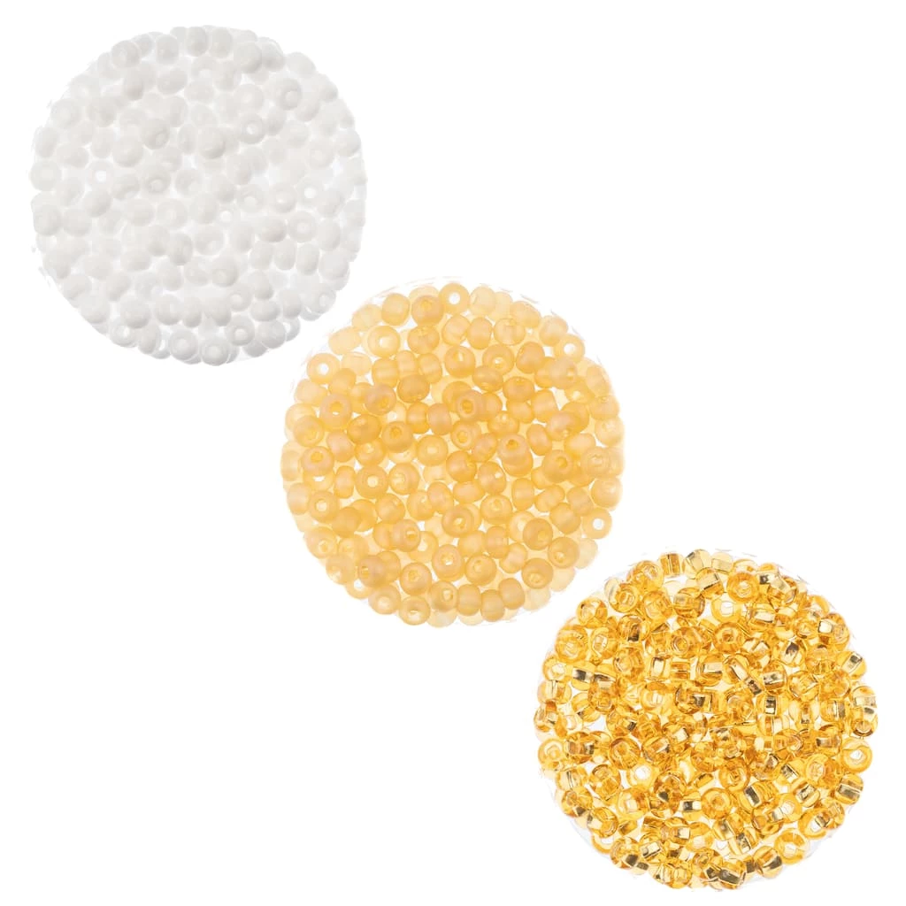 Design beautiful jewelry creations or DIY crafts with these sunlight czech seed beads by Bead Landing. Use the variety shades of yellow and white to create pretty accessories.