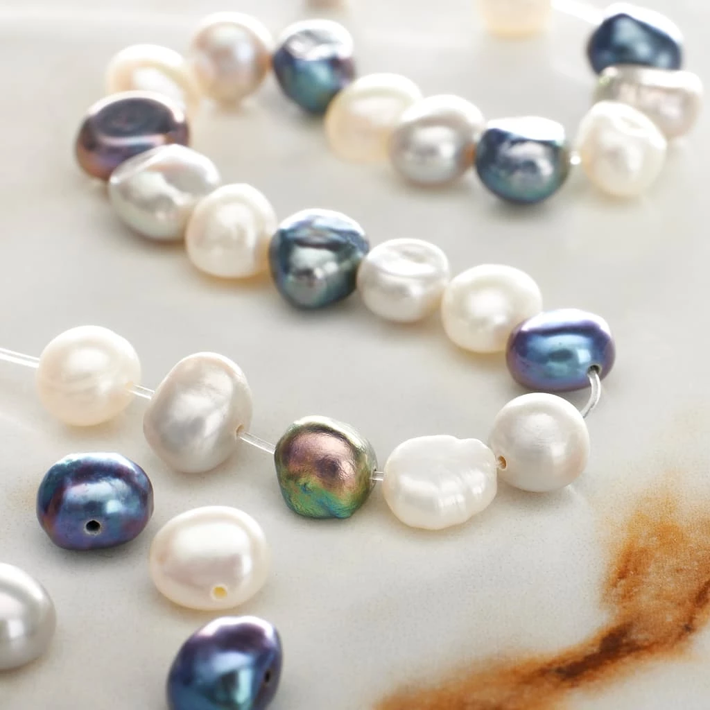 These striking potato pearl beads will add a nice hint of shimmer to your accessory creations. On their own or mixed with complimentary stones and charms, these beads will make lovely necklaces, bracelets and earrings and are also a wonderful accent for home dรฉcor projects and other crafts.