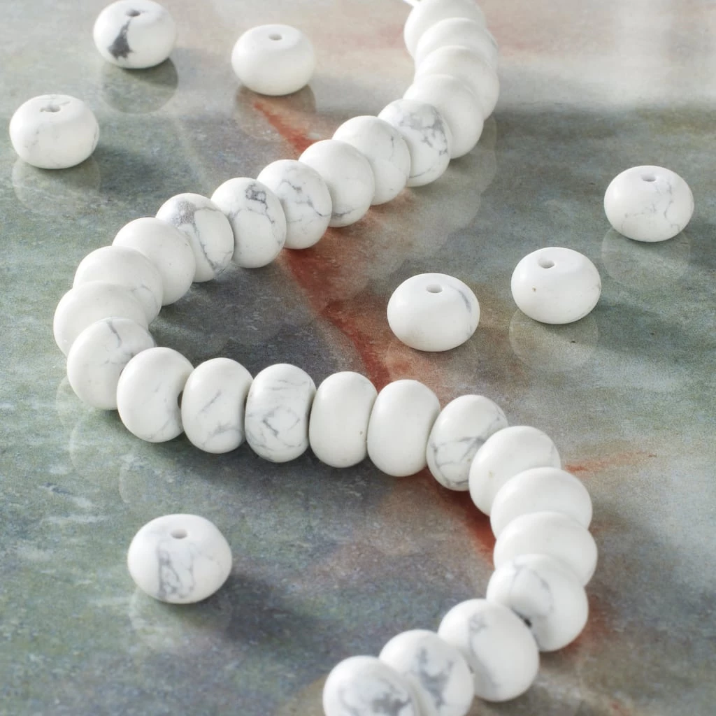 These striking white howlite beads will add an eye-catching appeal to your accessory creations. On their own or mixed with complimentary stones and charms, these beads will make lovely necklaces, bracelets and earrings and are also a wonderful accent for home décor projects and other crafts.