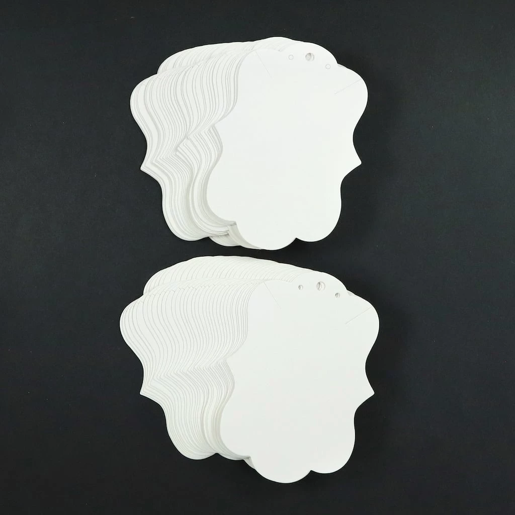 Look no further than these white cards by Bead Landing to showcase your earring and necklace sets. Perfect for packaging in retail stores, these cards feature slits and pierced holes to house small accessories.