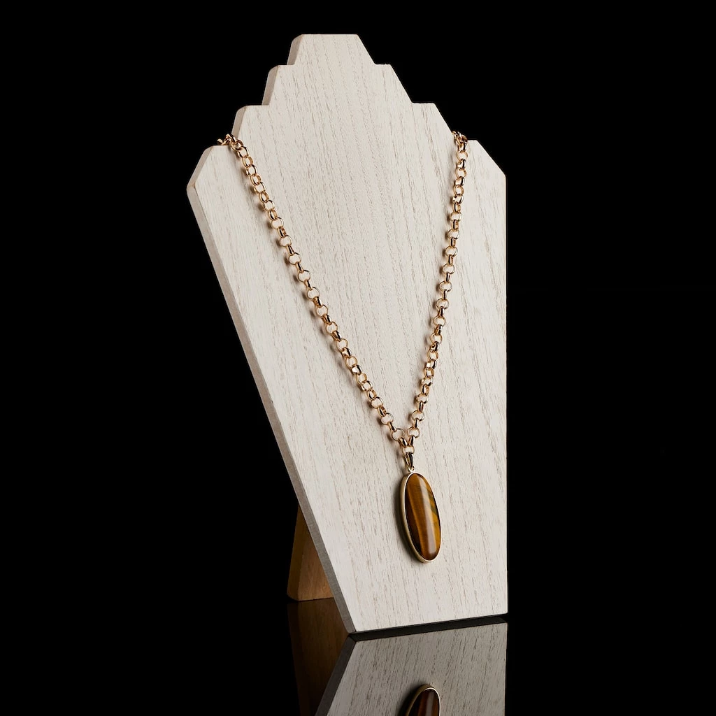 Conveniently and neatly display your necklaces with this wood bust. Its design allows for a perfect way to display your necklaces without tanglement and keep them neatly organized.